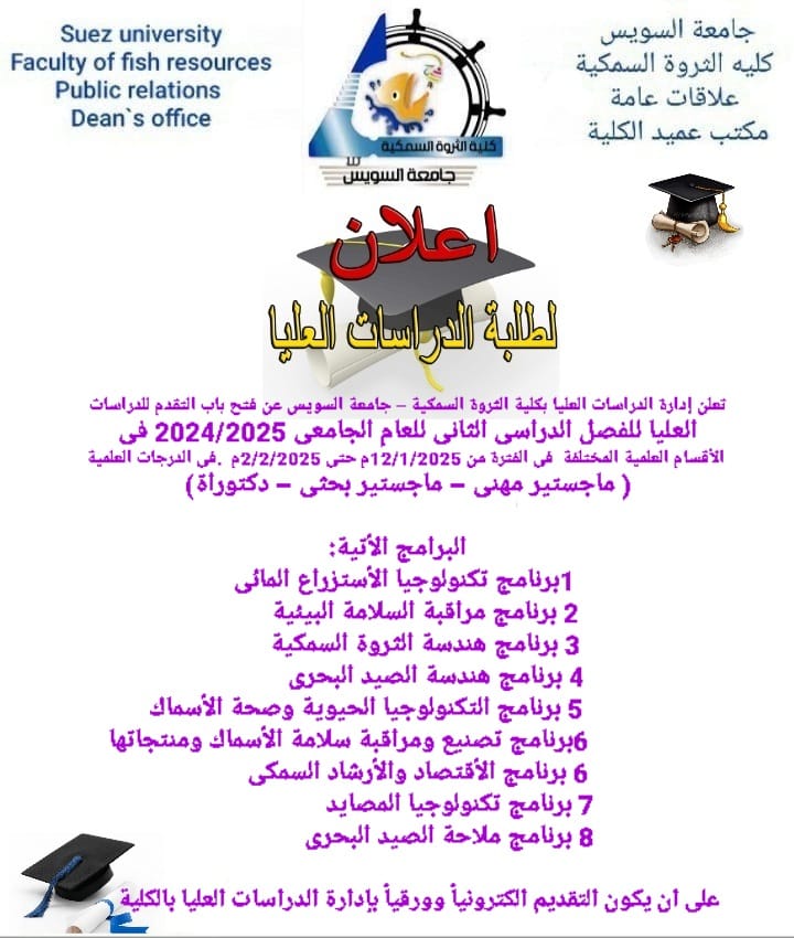 فتح باب التسجيل الدراسات العليا كلية الثروة السمكية