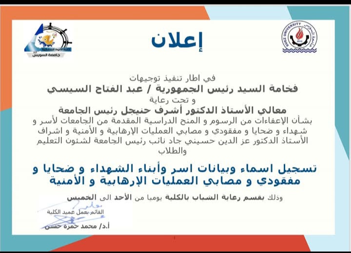 التهنئة لسفراء الكلية في اتحاد طلاب جامعة السويس
